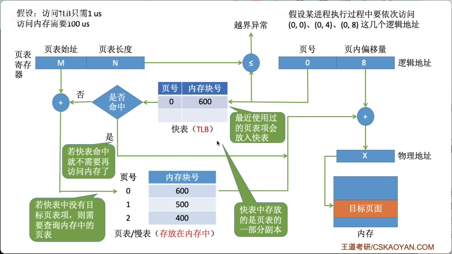 - 内存中的页表常称为 慢表