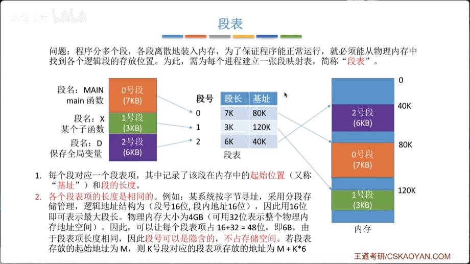 - 基本分段存储管理:段表、越界检查、分段与分页对比