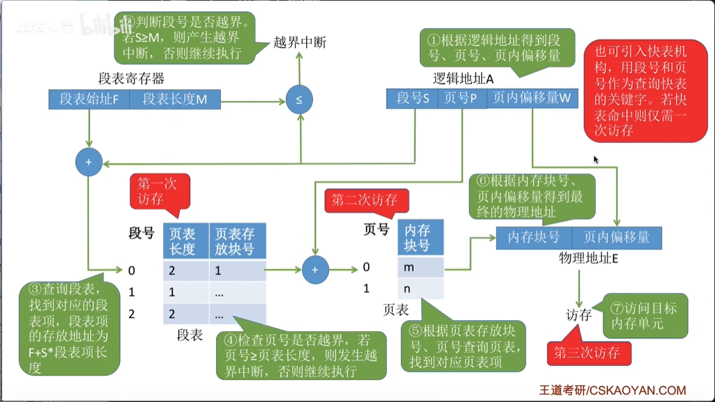 S ≥ 段表长度 M→ 越界中断。 - 查段表项,得到段长